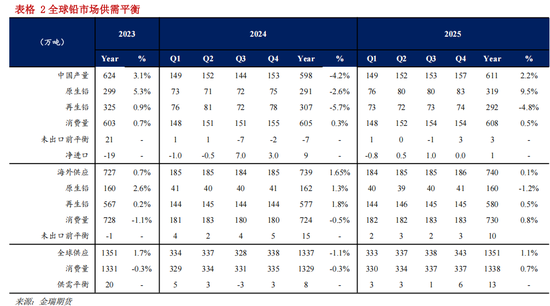 从需求层面看,预计下半年海外弱复苏,国内消费驱动切换到以旧换新政策带来的需求释放,铅酸电池出口或因关税政策调整或从去年高增速转为今年负增长,预期国内增长0.5%(+3万吨),全球消费增速0.7%(+9万吨)。