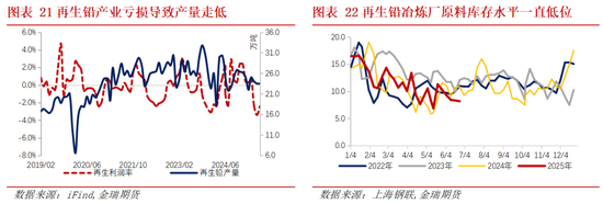 废电瓶近两年一直制约再生铅生产,2025年再生铅因原料废电瓶短缺导致上半年减产7.4%(-12万吨),预期下半年复产更加困难,全年或减量4.8%(-15万吨)。今年相继有江西源丰(产能7万吨)、江苏海宝(前期产能30万吨)新增产能在上半年投产,废电瓶收回难,原料库存水平低,成为行业普遍现象,再生铅厂大多开工不满,二季度行业平均亏损超过400元/吨,再生铅企业均以减产应对,原料偏紧的局面或持续。