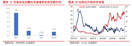 对于2025年下半年,我们认为消费的分化也将拉大,东盟及印度市场的电动两轮车前景相对较好,随着各国政府继续推动“油改电”政策,电动两轮车市场有望迎来迅速扩容,带来部分海外需求增加,而关税影响、增长放缓、资金位或又对企业盈利产生压力。今年海外库存高企,超预期的消费不存在,预计海外铅消费年度增速或为0.8%(+6万吨)。