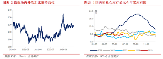 今年上半年铅价区间波动,铅市场超预期的点在于市场结构的转变。2024年中国因原料短缺导致冶炼大幅减产26万吨,国内大幅短缺,内外市场形成区域不平衡,推升铅价及比价,并催生中国进口铅锭近10万吨。2025年供需矛盾有缓和,中国冶炼利润刺激原生铅增产,再生铅亏损普遍减产,需求端有以旧换新政策支持,供需缺口缩窄,海外弱消费库存走高,中国不再呈现结构性短缺,进口需求大幅下降。