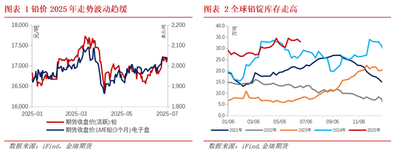 2025年上半年铅价小幅上涨,但波幅弱于去年同期,主因市场供需矛盾有所缓和,中国铅锭进口需求下降。