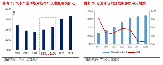 我们早在今年年报中提及,再生铅原料-废电瓶的矛盾始终贯彻全年,究其原因,一方面是中国连续四年铅酸蓄电池出口两位数增长,造成的废电瓶原料流失的影响逐步体现。另一方面是考虑导锂电池替代、消费降级拉长电池替换频率等,存量市场替换需求近乎停滞,带动废电瓶报废陷入周期性低点。