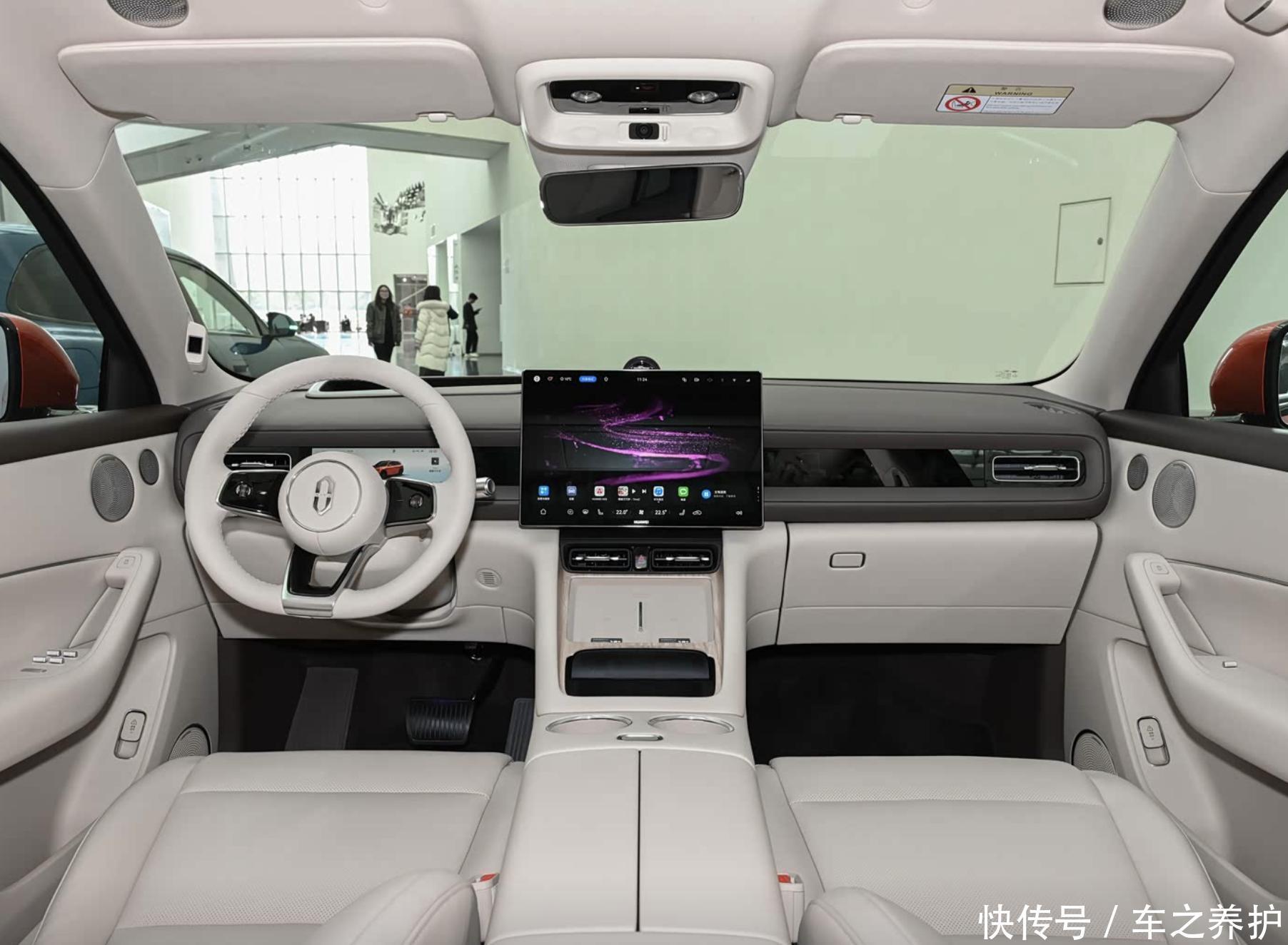 同时,车内大面积采用了Nappa真皮与麂皮材质包裹,触感细腻亲肤,中控台使用哑光饰板,再加上一体式运动座椅、星环散射体的天空声道音响、带遮阳帘的全景天幕等,带来了较强的豪华感。